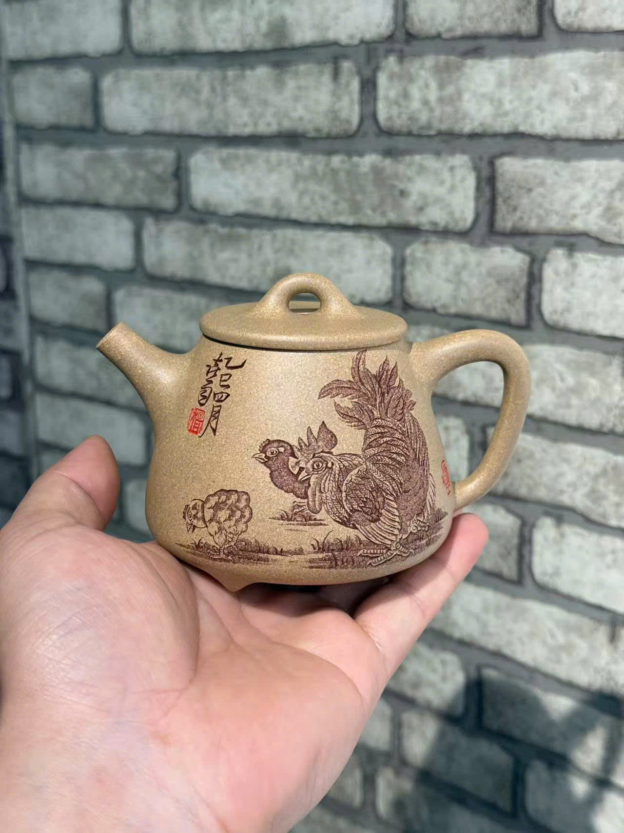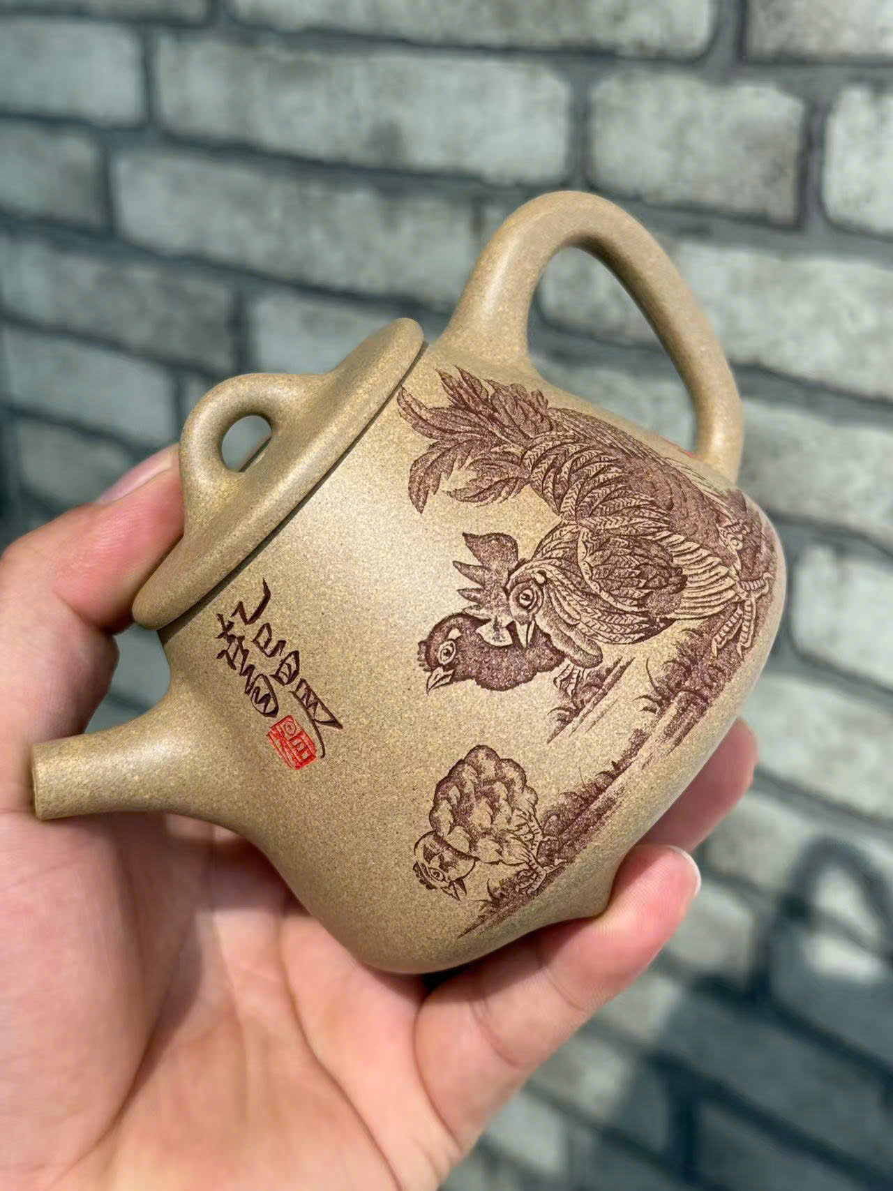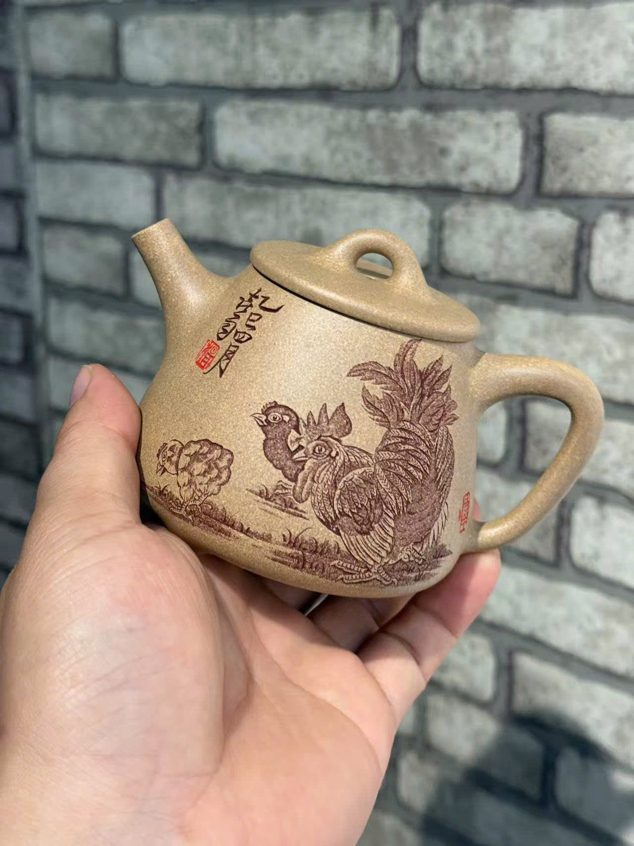 Ấm Thạch Biều Cao Đoạn Nê họa tiết Kim Kê Báo Hiệu là sự kết hợp tinh tế giữa nghệ thuật gốm tử sa truyền thống và chiều sâu văn hóa phương Đông. Với dung tích 250ml – vừa đủ cho một buổi trà đàm – chiếc ấm này không chỉ là công cụ pha trà, mà còn là vật phẩm phong thủy may mắn, thích hợp trưng bày, biếu tặng hoặc sưu tầm.