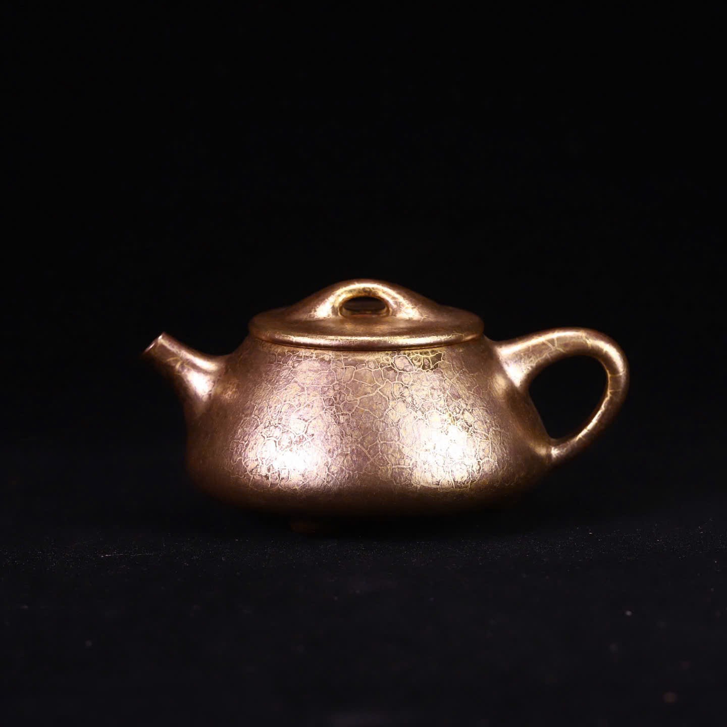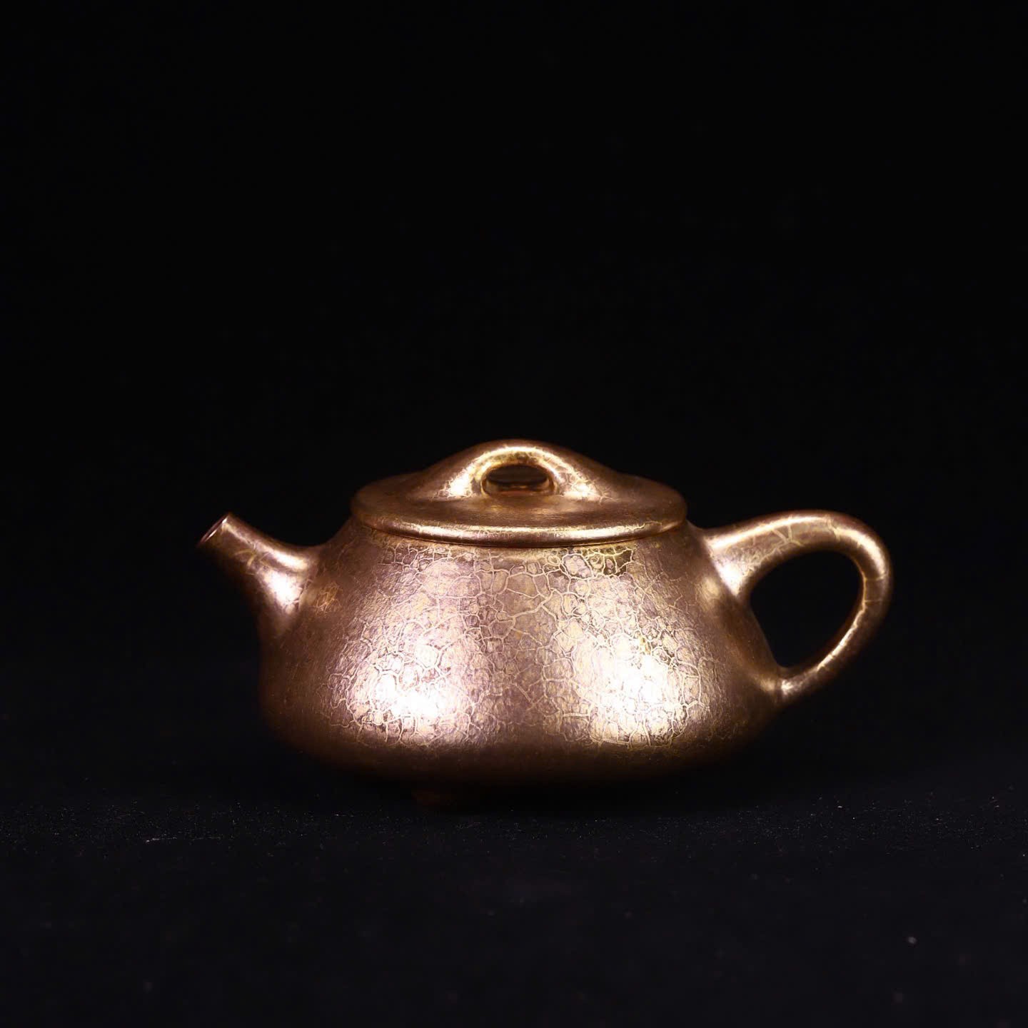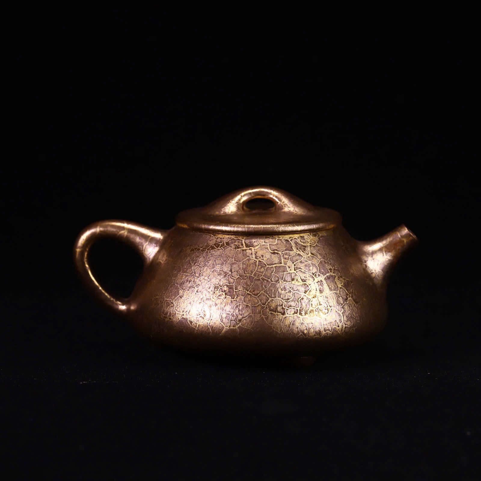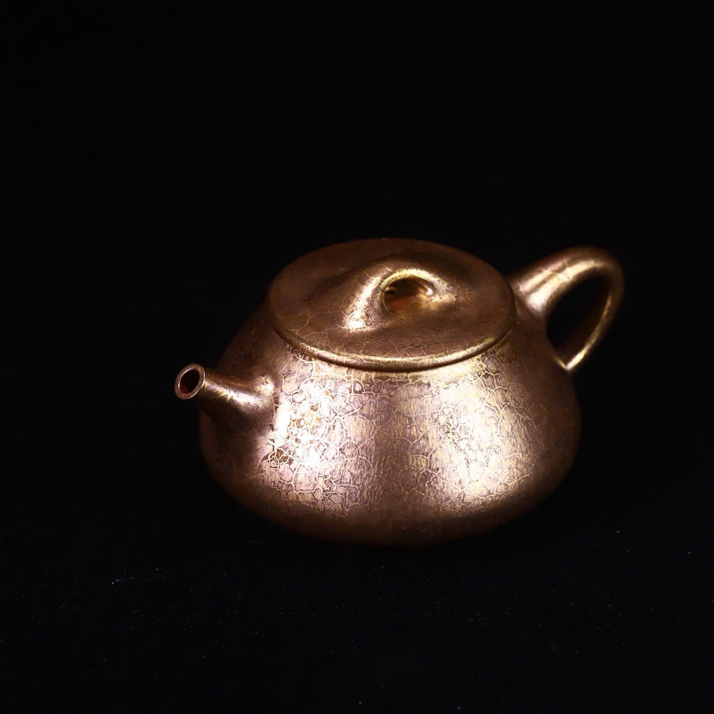 Mỗi chiếc ấm là một độc bản. Lớp “áo men” ánh vàng tự nhiên do canxi từ vỏ sò hóa thân ở nhiệt độ 1200-1300°C tạo ra những vệt rạn không thể sao chép — không có hai chiếc ấm nào giống nhau hoàn toàn.