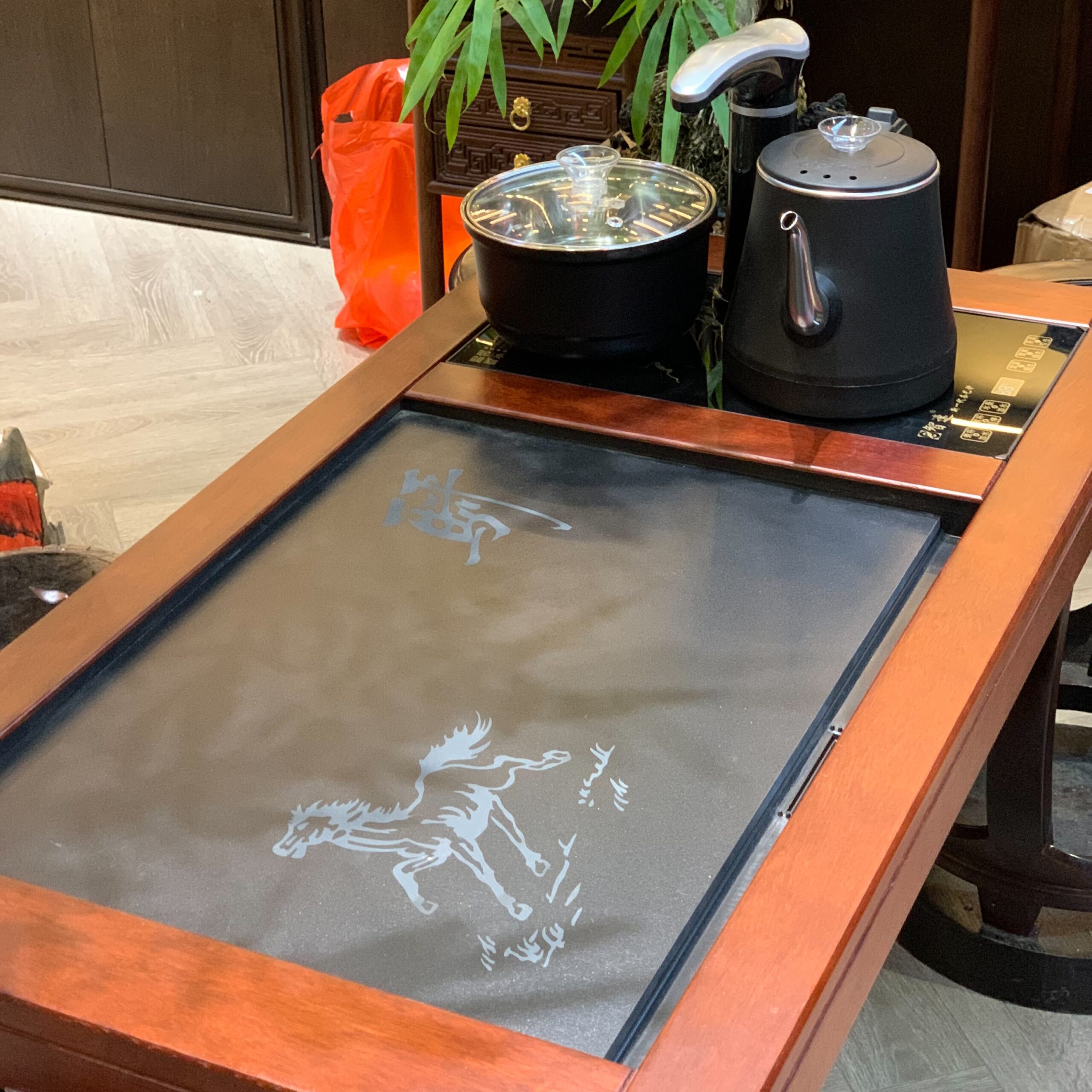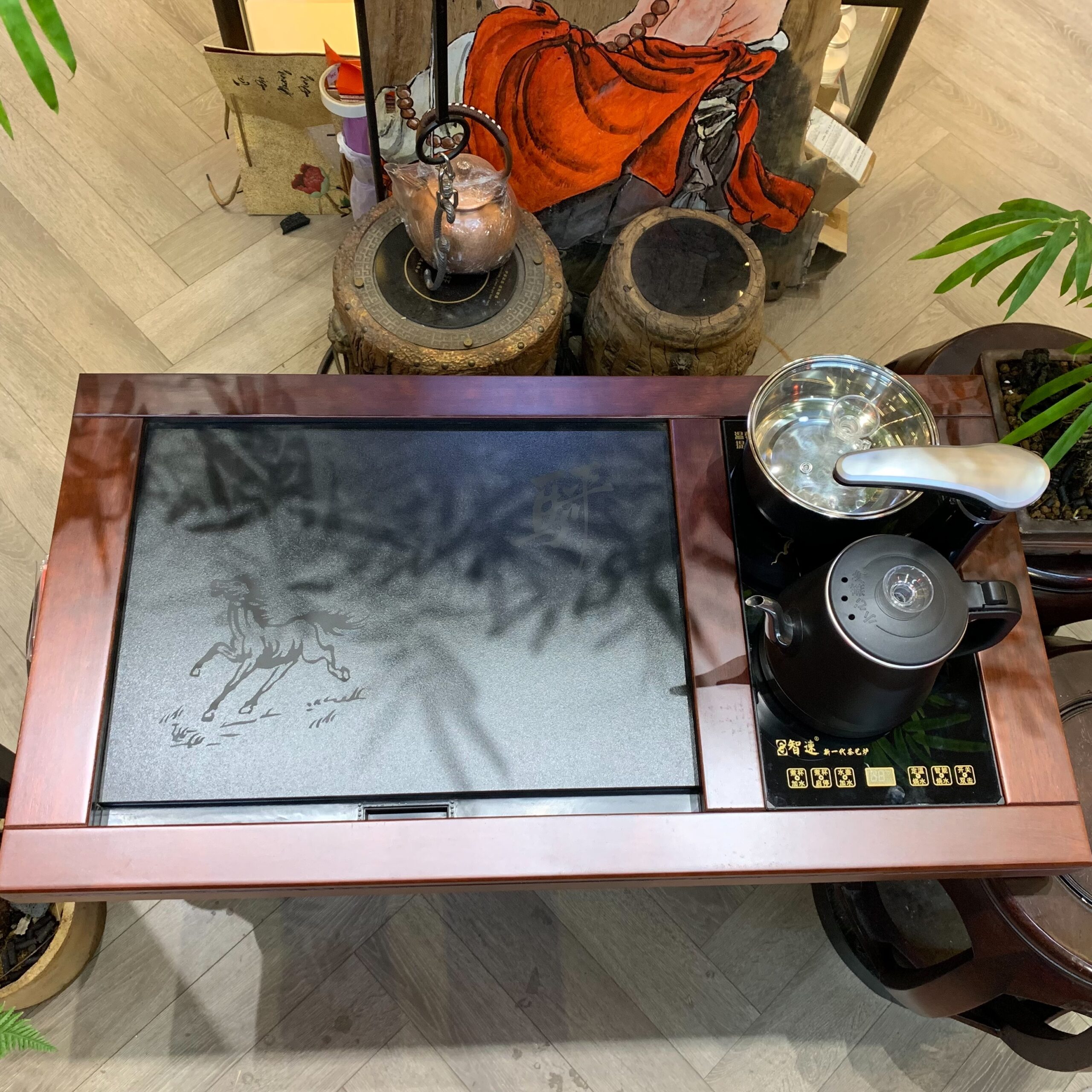 Trong văn hóa trà đạo, một bộ trà cụ hoàn hảo không chỉ dừng lại ở ấm chén mà còn là “nền tảng” giúp hương trà thêm phần thăng hoa. Tại Ý Trà Quán, chúng tôi tự hào giới thiệu mẫu khay trà điện gỗ hồng mộc kết hợp mặt đá tự nhiên – một sự giao thoa độc đáo giữa vẻ đẹp truyền thống của gỗ quý và tính ứng dụng của công nghệ pha trà thông minh.