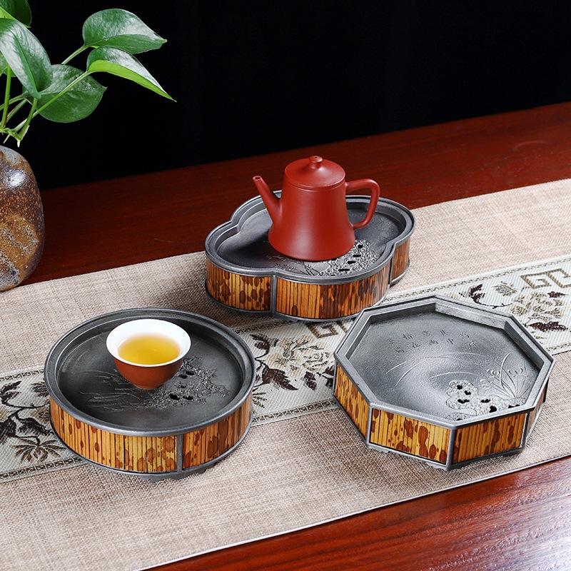 Làm Đế Ấm: Với khả năng giữ nhiệt và chống trơn trượt tốt, chiếc khay là bệ đỡ hoàn hảo cho những chiếc ấm tử sa quý giá, giúp tôn lên vẻ đẹp của ấm.
