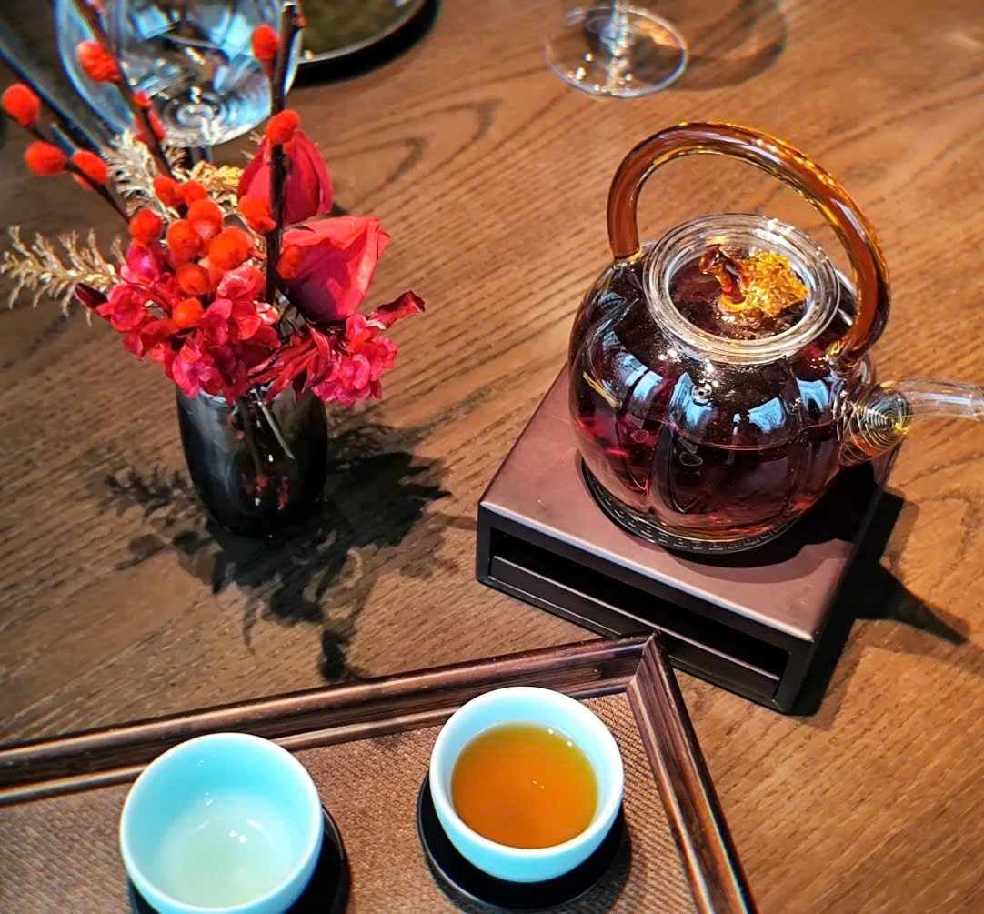 Nước trà mềm mại, đậm đà, bao trùm vị giác.